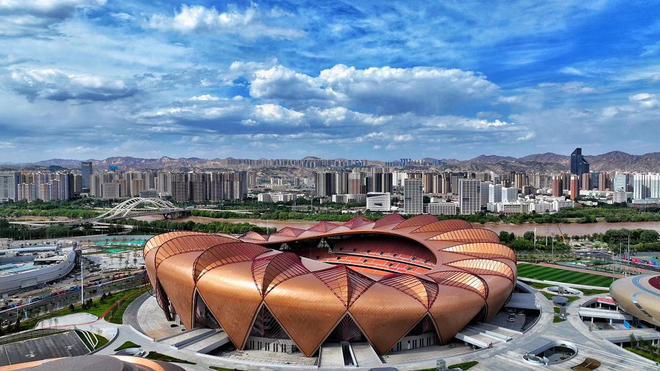 由中國十七冶承建的蘭州奧體中心,采用“飛天花舞”設(shè)計(jì)理念,建筑猶如五朵花舞動于絲綢之路上,總建筑面積46.6萬平方米,由60000座玫瑰體育場、8000座郁金香綜合館、3000座百合游泳館、3000座荷花網(wǎng)球館、蘭花運(yùn)動員公寓等單體組成。其中郁金香綜合館弦支穹頂是世界上首個吊掛大噸位斗形屏(40t)的矢跨比小于1/12的90米級大跨度弦支穹頂結(jié)構(gòu)工程。